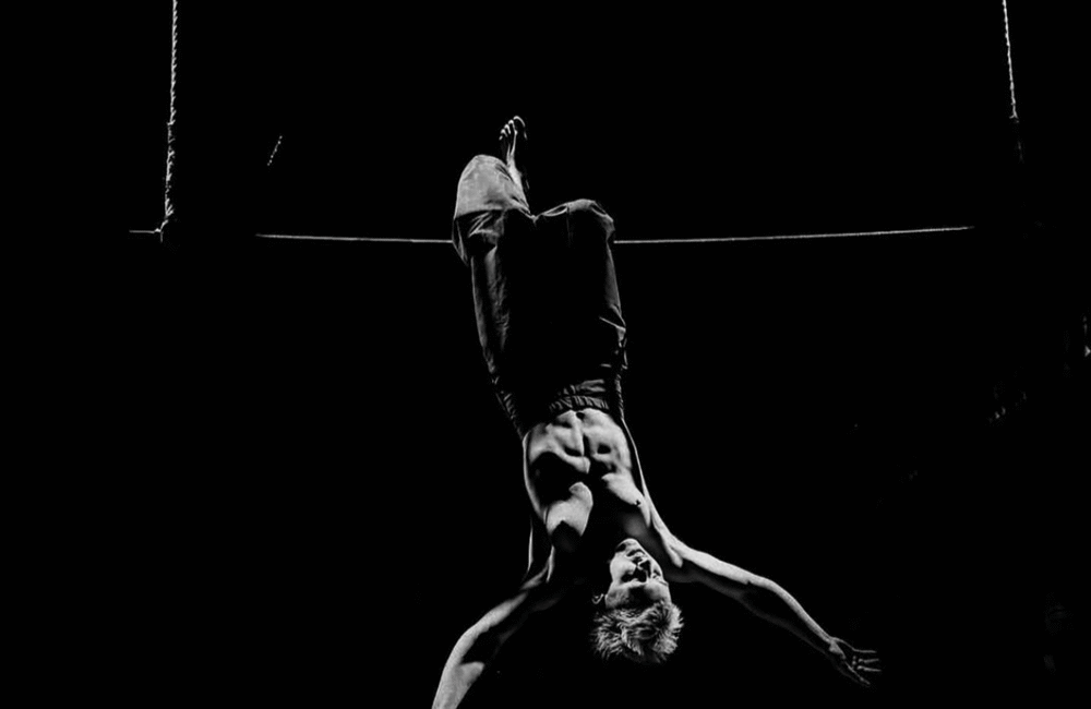 On stage, displaced memories and presences are summoned without nostalgia. Loved ones, distant or gone, continue to exist in gestures, silhouettes, suspended clothing and movements that persist. The relationship is built through hand-to-hand acrobatics, the duo’s central language, as a space of trust, support and shared risk. Supporting and being supported becomes a way of crossing time, distance and uncertainty.